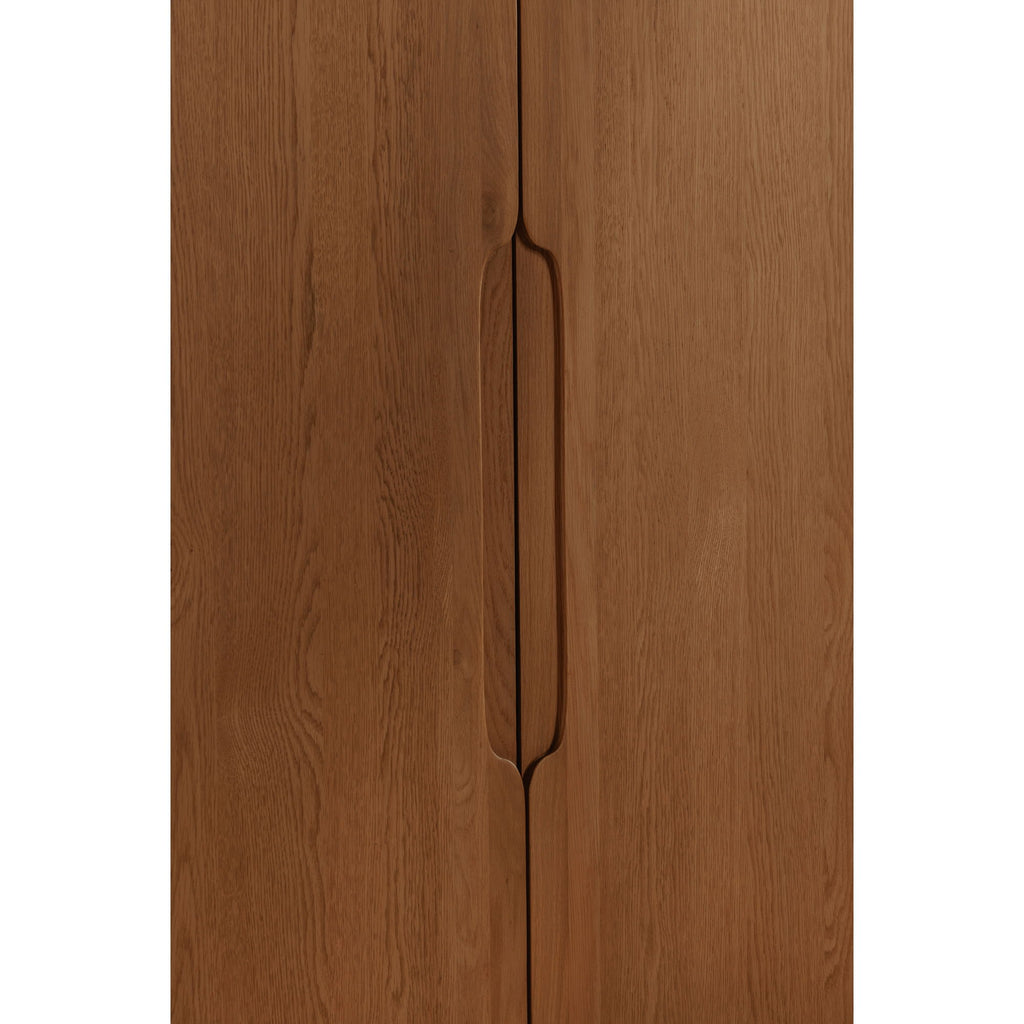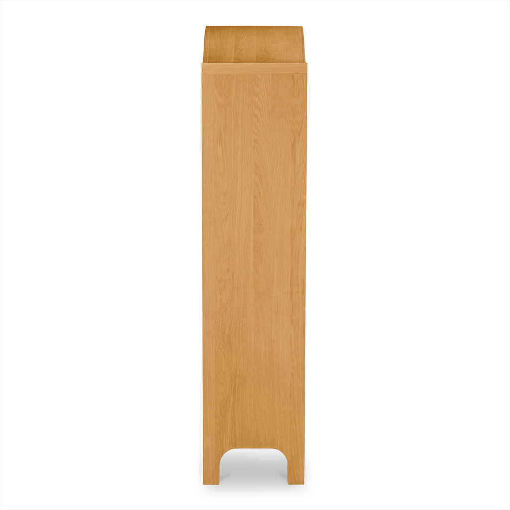 The Adler tall cabinet harmonizes curves and craftsmanship, blending baroque-inspired elegance with contemporary minimalism. Crafted from premium oak and oak veneer, it showcases nature's artistry in every grain. Four adjustable shelves offer versatile storage, while inset handles maintain clean lines.