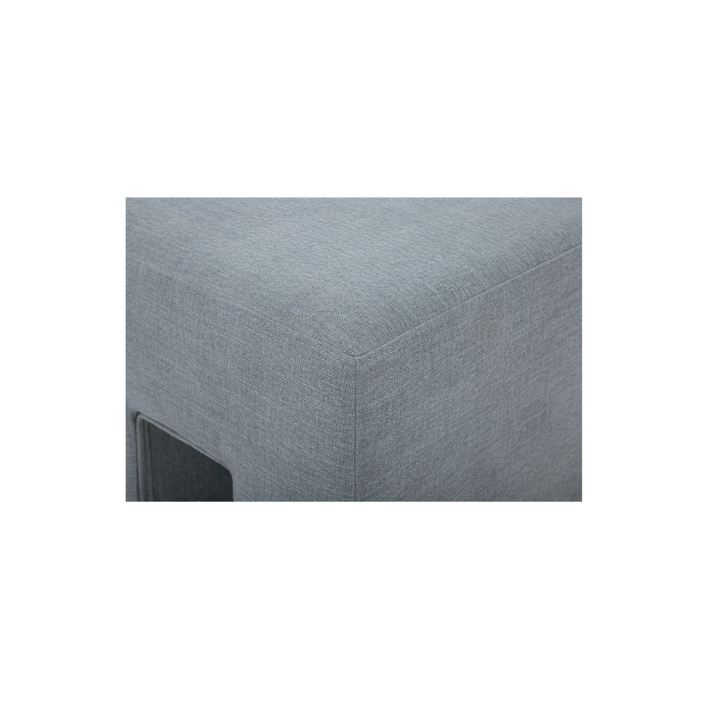 Square never felt so relaxed. The Aidy Stool takes its chunky silhouette and softens it with a linen-blend fabric in light blue that feels airy and easy. The textured weave and slightly wrinkled finish add subtle dimension, while the firm foam seat keeps it grounded and practical. Equal parts playful and polished, this stool is proof that minimal lines can still have plenty of personality.