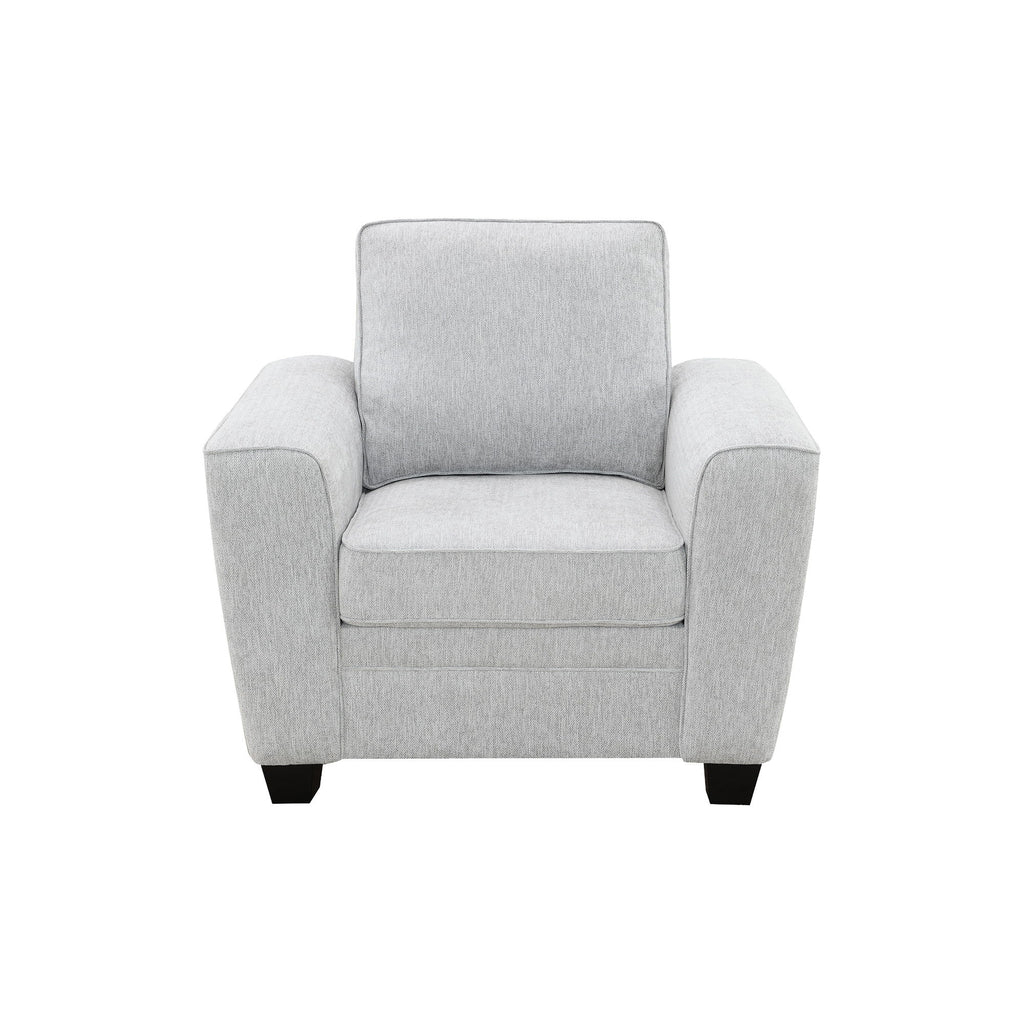 Relax in modern sophistication with the Ashbury Collection, where comfort meets contemporary design. Upholstered in a soft, slubby chenille fabric in an elegant soft gray hue, this collection brings an inviting and versatile style to any home décor. The Ashbury features gently flared arms and deep, plush seating designed for ultimate comfort and relaxation. Each piece is fully upholstered on all sides, allowing you the freedom to float your furniture anywhere in the room for a seamless, balanced look. Built to last, the sturdy frame is crafted from solid wood and plywood for superior durability, while sinuous springs and foam-encased pocket coils provide exceptional support and long-lasting comfort. Tapered solid wood feet add a refined finishing touch.