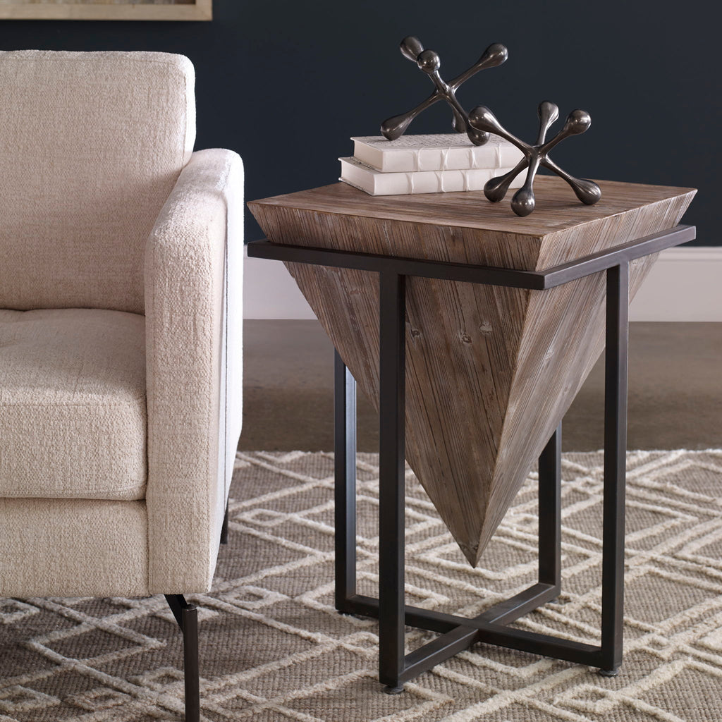 This Upside Down Pyramid Is Finished In A Rich Mushroom Faux Shagreen, Nestled Into An Iron Base.