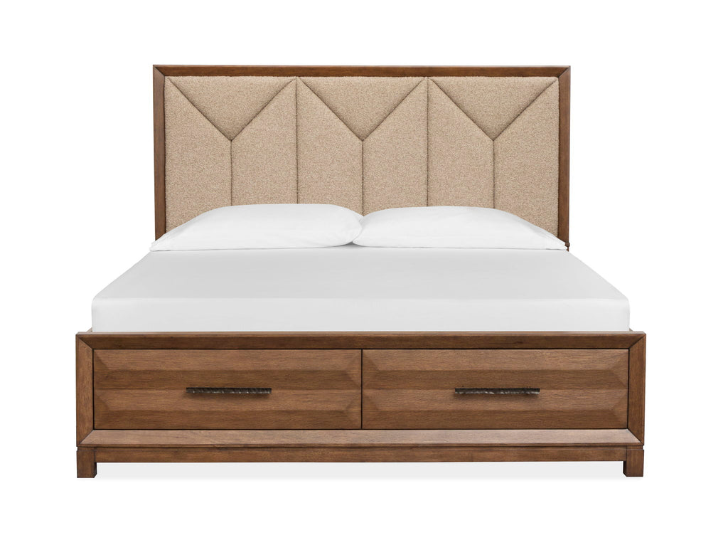 Callisto - California King Upholstered Panel Storage Bed - Bourbon Brown 91.0"W x 80.75"D x 60.0"H - 283.05 lb