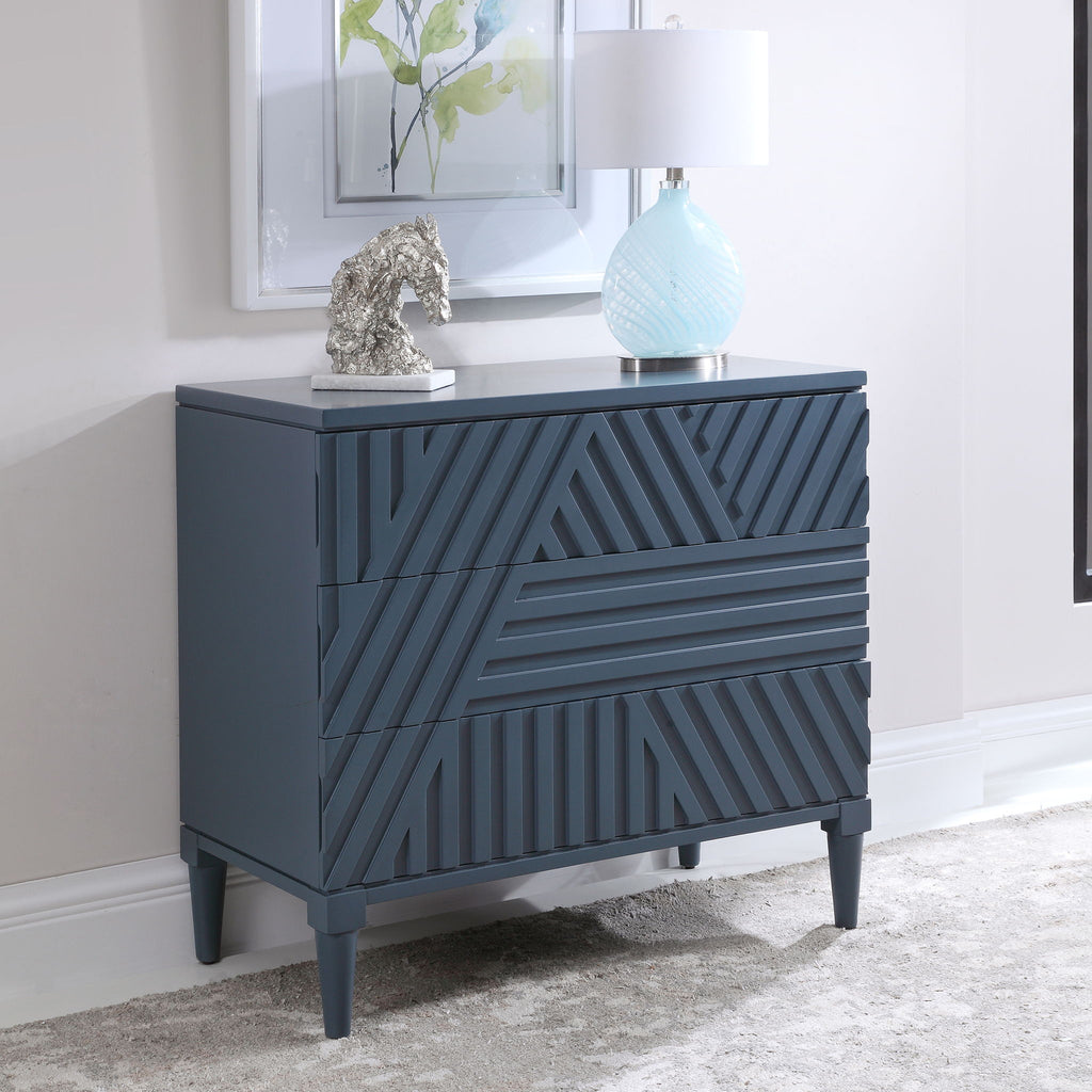 Refreshingly Modern, This Geometric Accent Chest Features Carved Drawer Fronts, Creating A Monochromatic Statement In A Deep Finish.