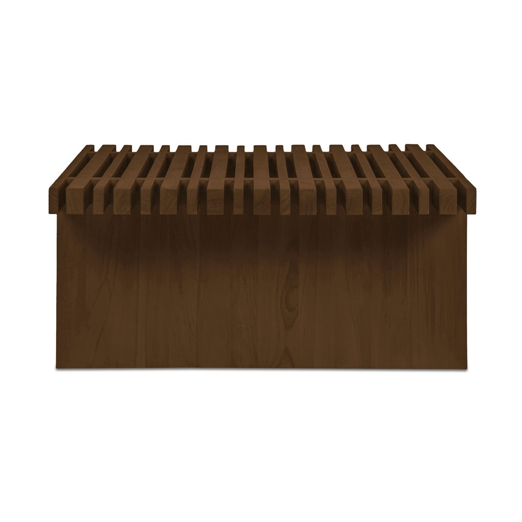 Fletcher keeps it low-key, with solid teak construction that brings quiet strength and natural warmth. Made from solid teak and finished in a toasted tone, it balances substance with softness. A slatted top plays with proportion, mixing wide and narrow planks for texture that feels thoughtful. Slatted, grounded, good to go.