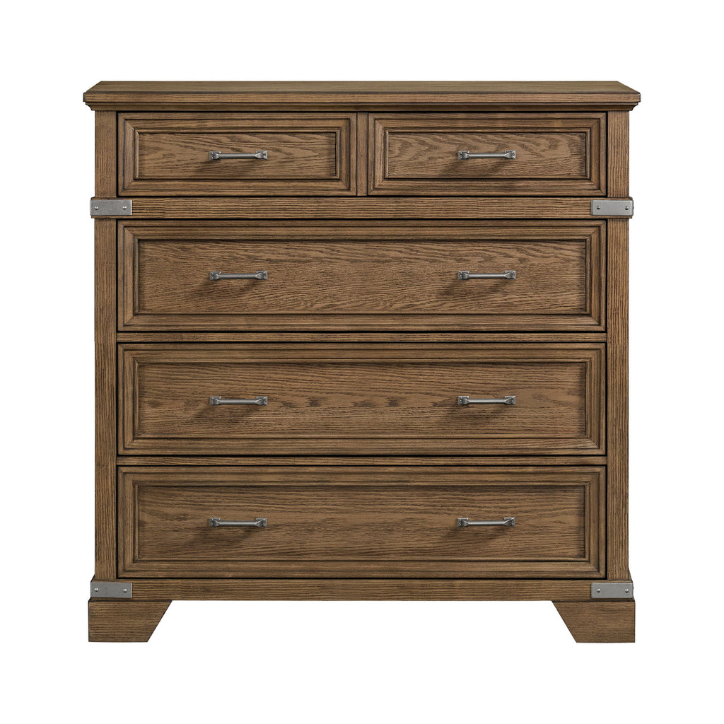 The Forge Bedroom Collection features Oak Veneer and Select Hardwood constructions in a wire-brushed finish. With detailed metal accents and hefty hardware, this trendy bedroom set will add diverse style to any bedroom.