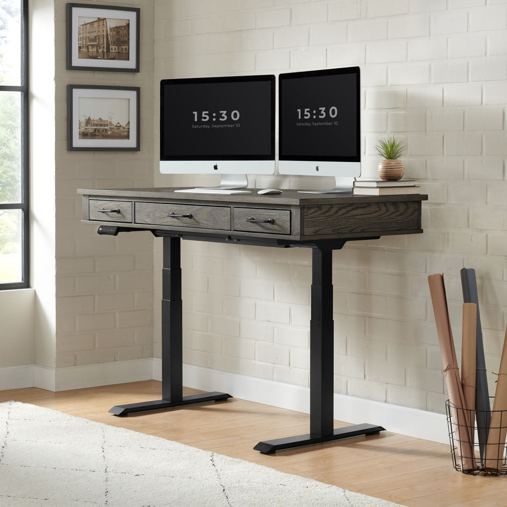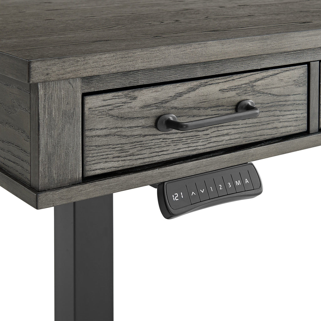 The Foundry Home Office Collection is offered in a wire-brushed Pewter Finish for a natural, rustic appeal. Constructed from Oak Veneer and Select Hardwood, with metal accent plates throughout.