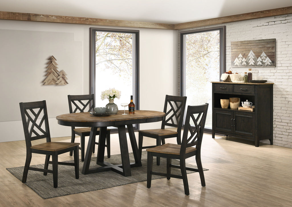 The Harper Dining group has family friendly solid wood construction. It’s Transitional style blends simple lines with a striking two tone finish. The Harper Dining group is tailored to fit in today’s modern home with dining configurations designed to fit in small, medium and large spaces.