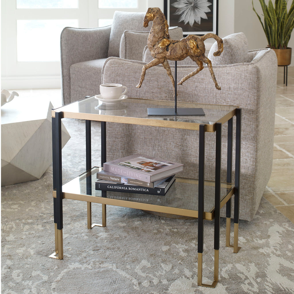 Kentmore - Glass Side Table - Black & Gold 27.8"W x 16.0"D x 24.0"H - 31.0 lb
