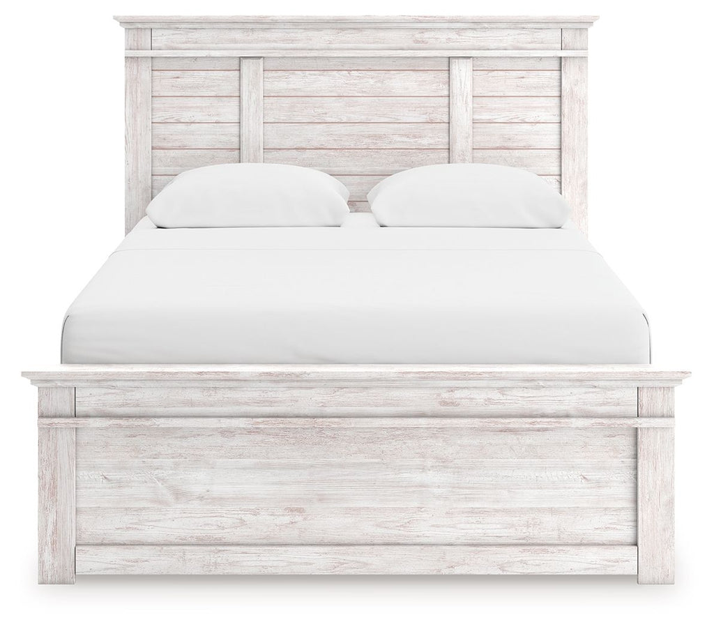 Makidern - Queen Panel Storage Bed With Under Bed Storage Unit - Whitewash 67.5"W x 85.5"D x 54.75"H - 277.0 lb