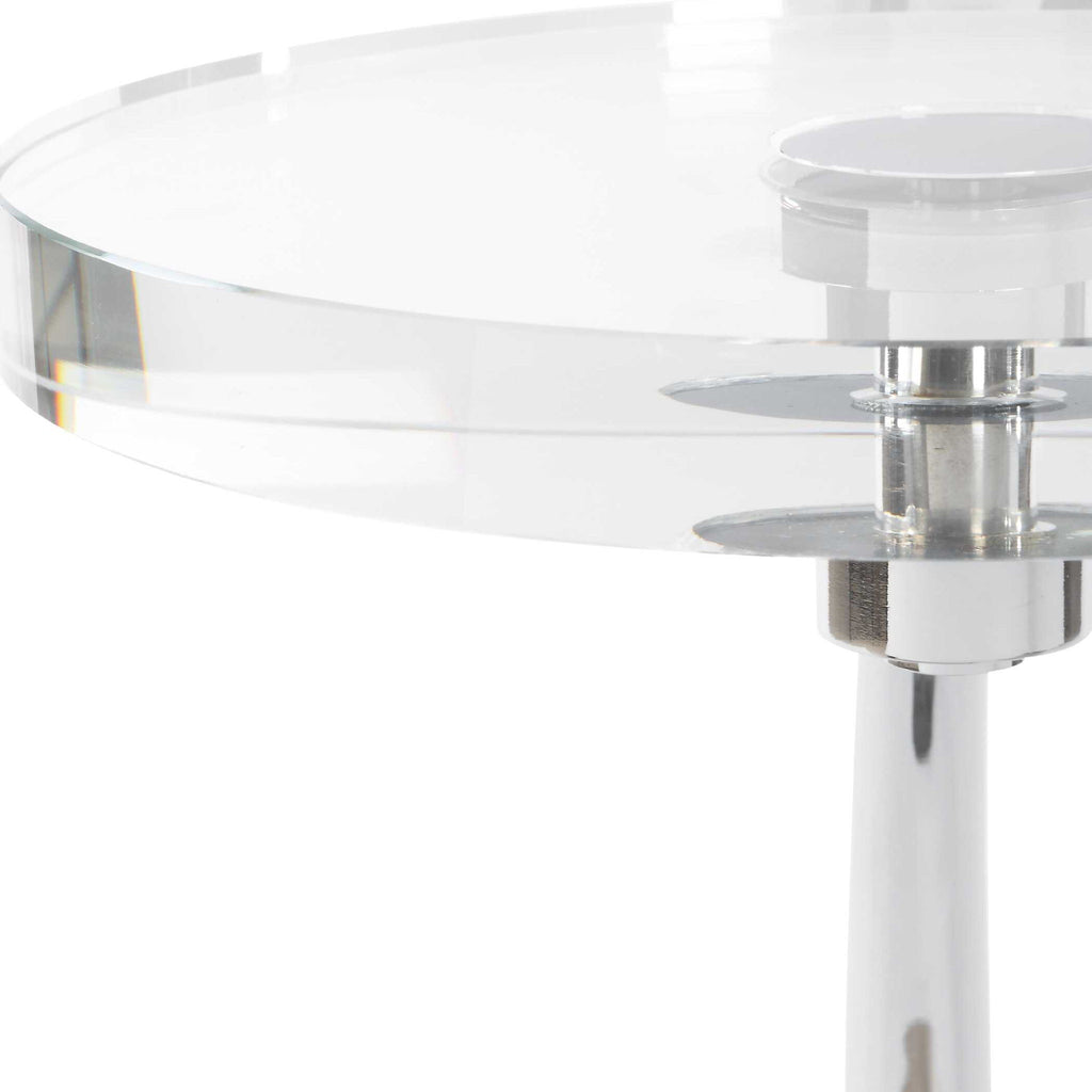 Minimal Yet Sophisticated, The Waveney Drink Table Displays A Sleek Curved Base In Polished Nickel Plated Iron With A Thick Crystal Top.