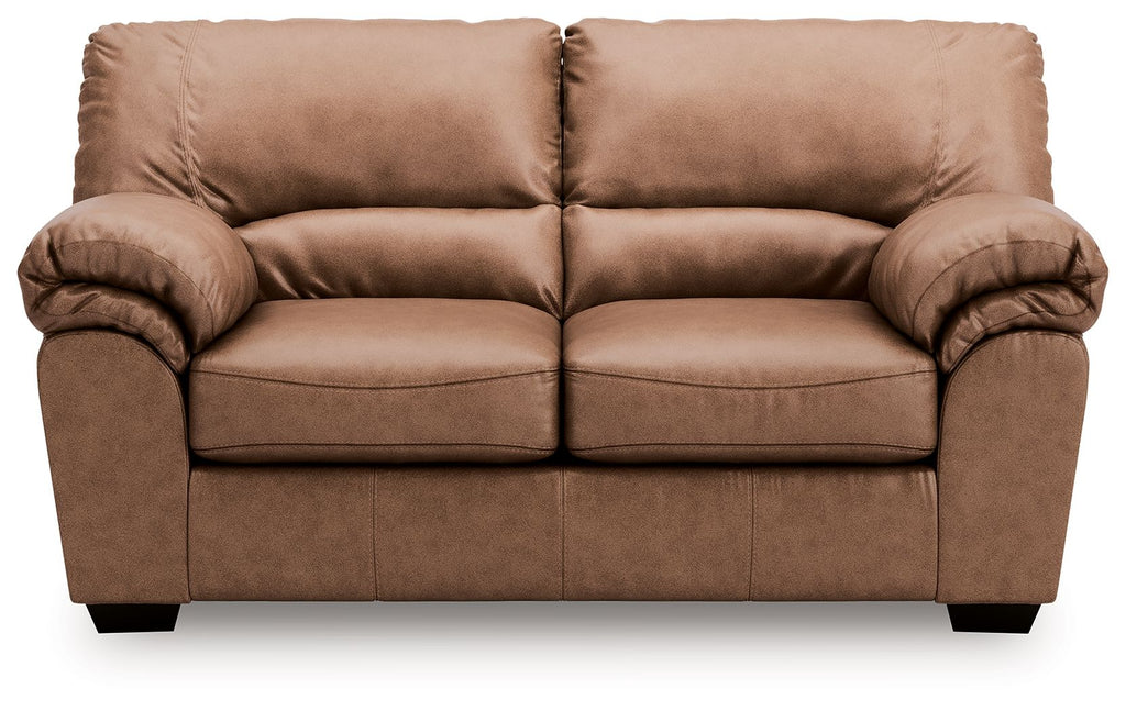 Modern comfort never looked so good. Sporting supremely soft yet durable cushions accented with high-fashion jumbo stitching, this stunning loveseat is the ultimate choice in comfortably cool, contemporary style. Its faux leather indulges with an upscale feel and wows like the real thing.